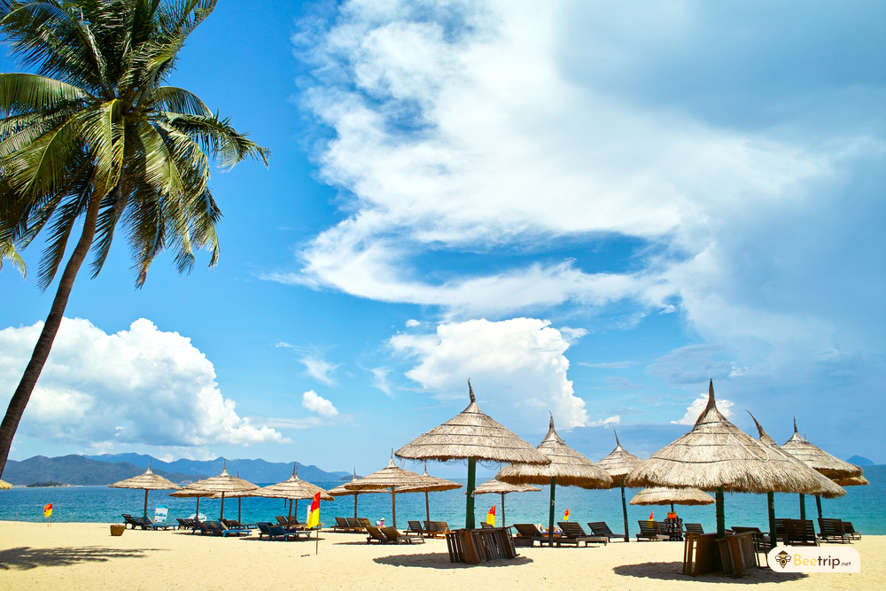This tropical beach is famous for the crystal-clear sea water, you can see clearly what is underwater almost year-round. The wet season lasts from October to January, so the perfect time to visit Nha Trang is around from June to early October, when the water is at its cleanest. Most accommodations lie very close to the beach and near the main road, as a result, it only takes you about 2 minutes of walking to reach the beach from your hotel.