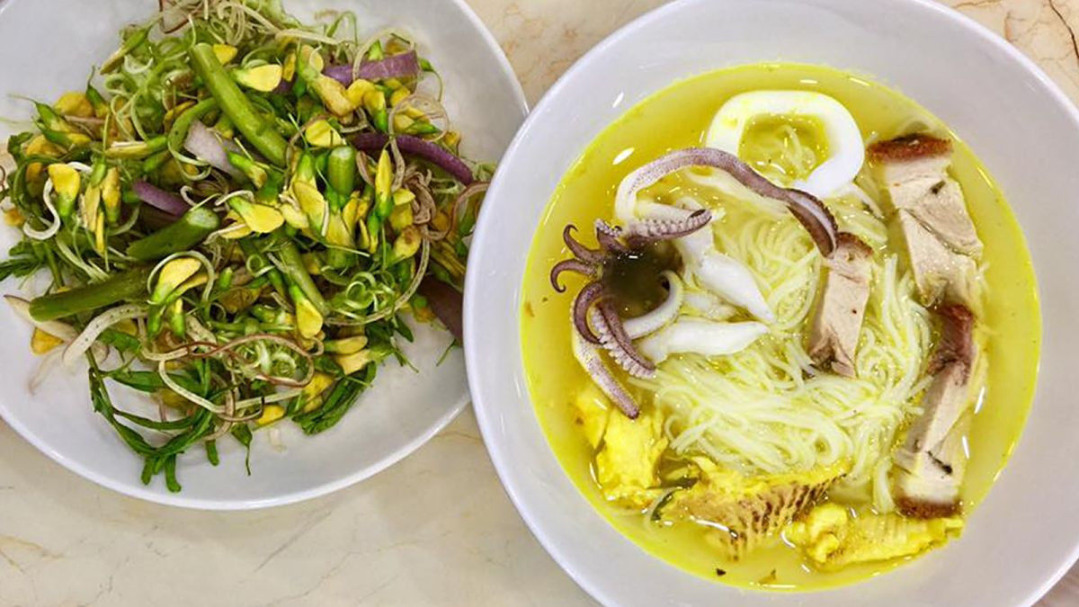 You should visit chau Đoc - An Giang once in a lifetime which is not only famous Famous for Bun Ca dish but also well-known for soup Điên Điển flower and stop at Bay Bong 2 restaurant located at Trung Vuong Nu street, connecting the road 2000 to enjoy Sesbania Sesban flower soup which has been Passed down from more than three generations but still remains the same this is the best place here.